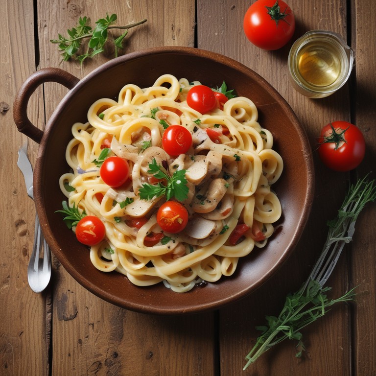 Fideos Supremos con Queso de Crema y Salsa de Cebolla y Tomate