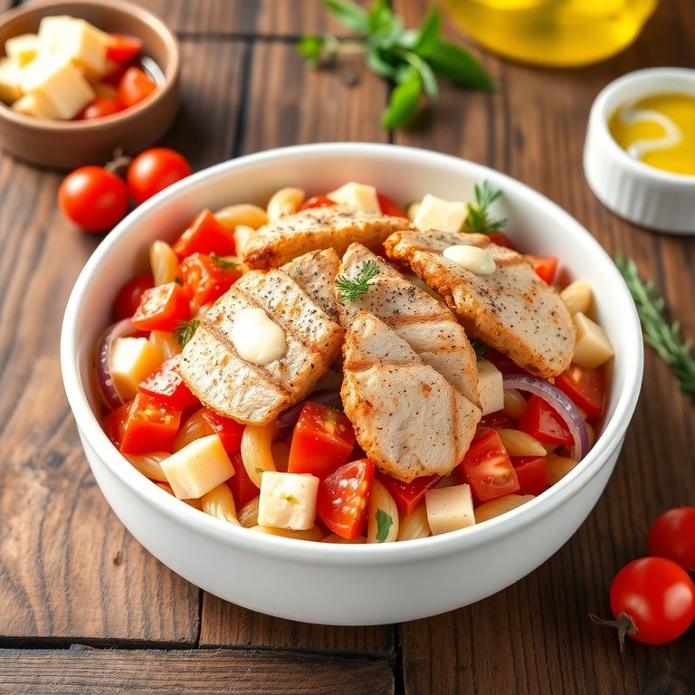 - Ensalada Mediterránea de Pasta con Pollo y Vegetales Frescos