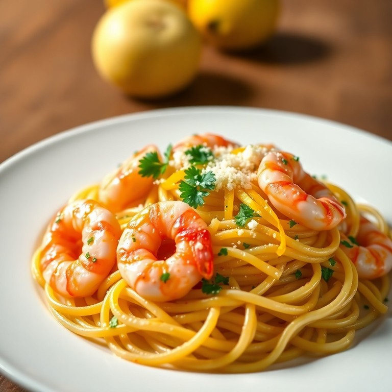 Camarones al Ajillo con Pasta de Limón y Parmesano