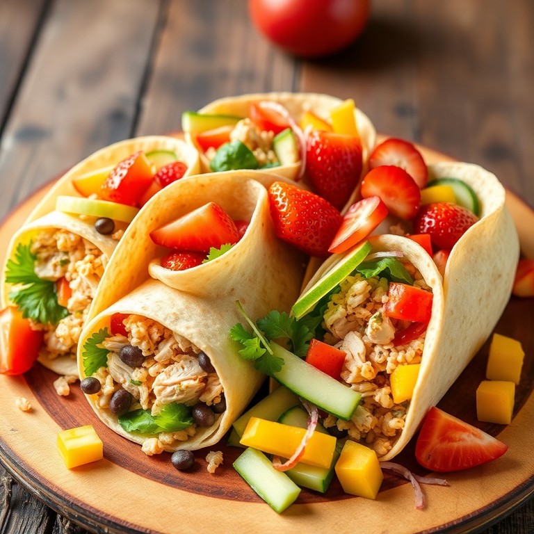 Wraps Saludables de Pollo, Arroz, Frijoles y Manzana