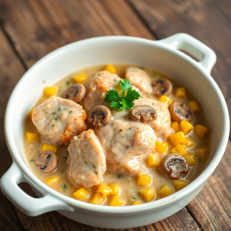 Pollo en Salsa de Champiñones y Maíz al Estilo Italiano