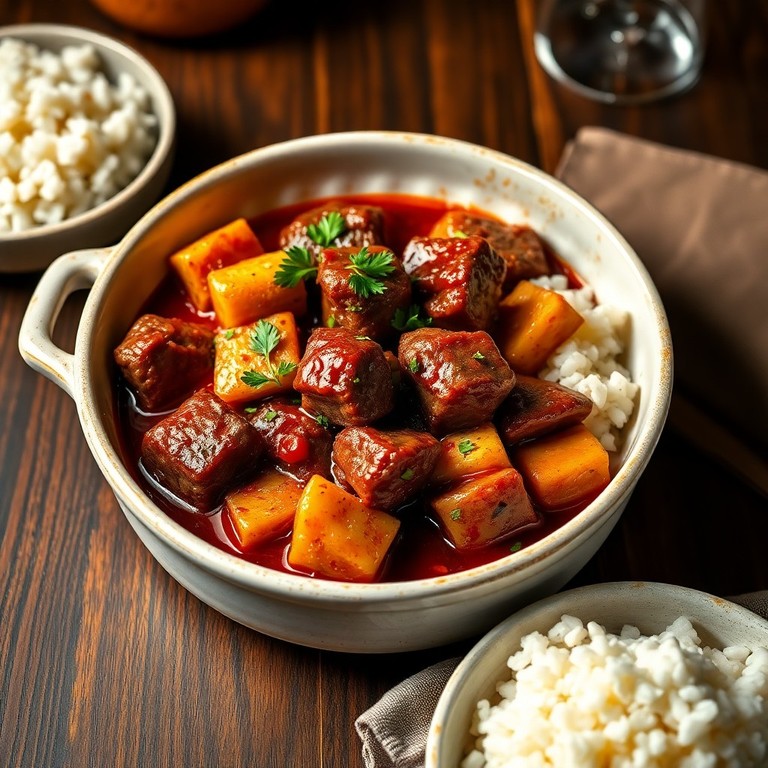Loche en Salsa de Vino Rojo con Carne de Res