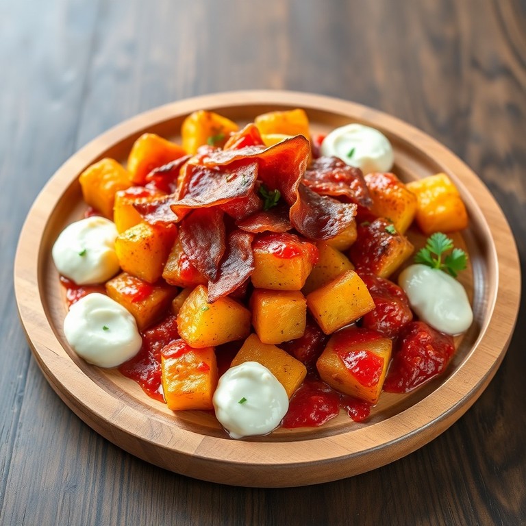 Patatas Bravas con Jamón y Alioli de Ajo en Polvo