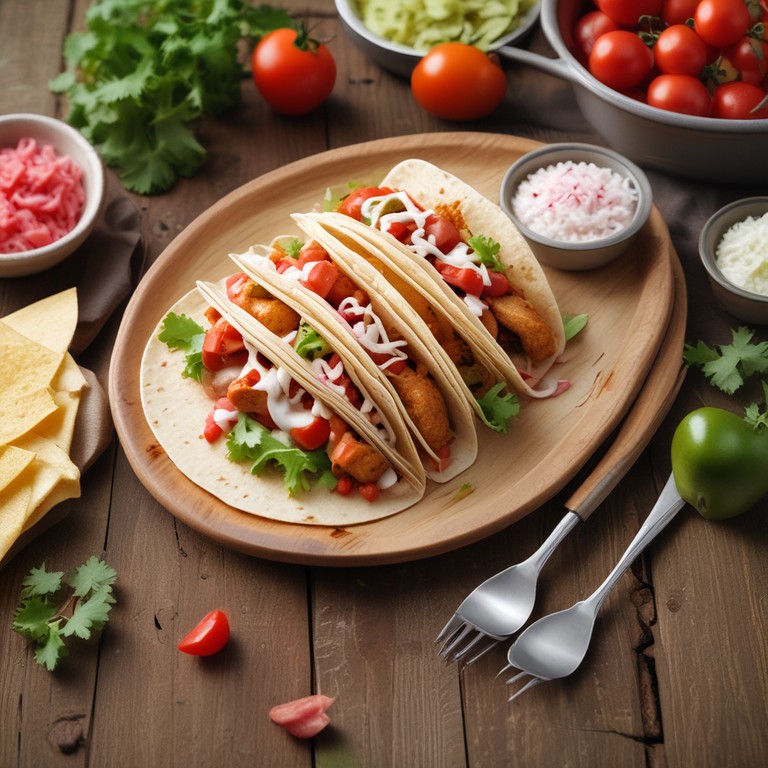 Tacos de Pollo con Salsa Rosada y Arroz