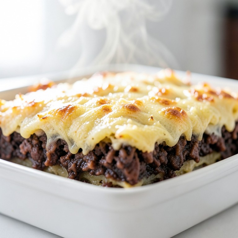 Pastel de Cerdo Jugoso con Plátano Maduro y Queso Gratinado