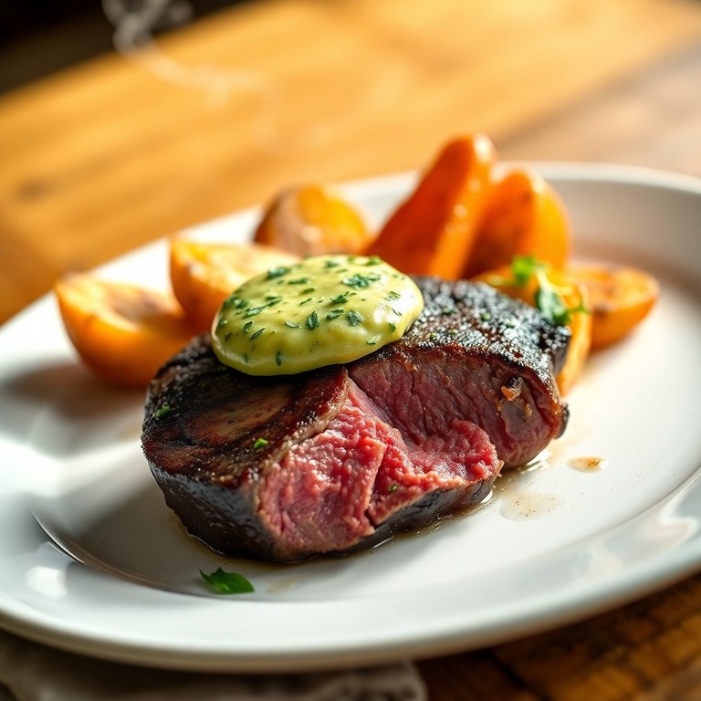 - Pan-Seared Faux-Filet with Classic Herb Butter and Roasted Vegetables