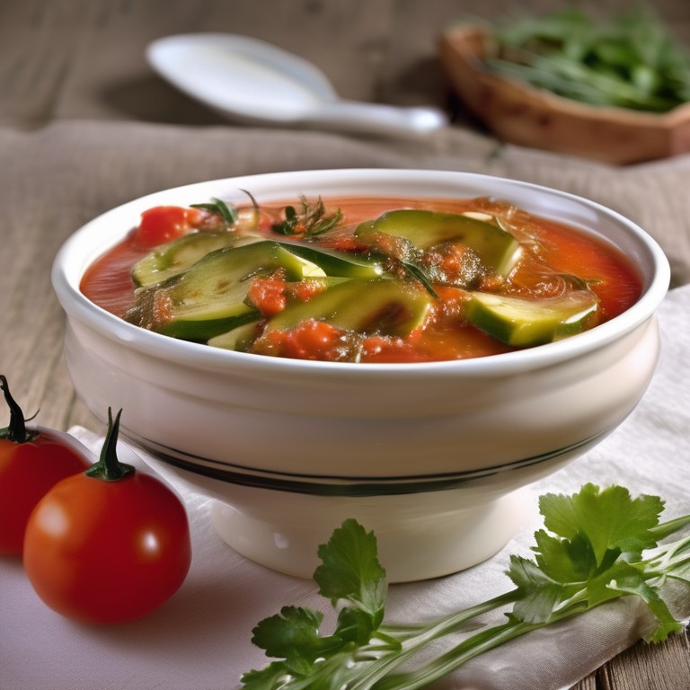 Un delicioso salteado de calabacín fresco con tomate y cebolla, sazonado con hierbas aromáticas.