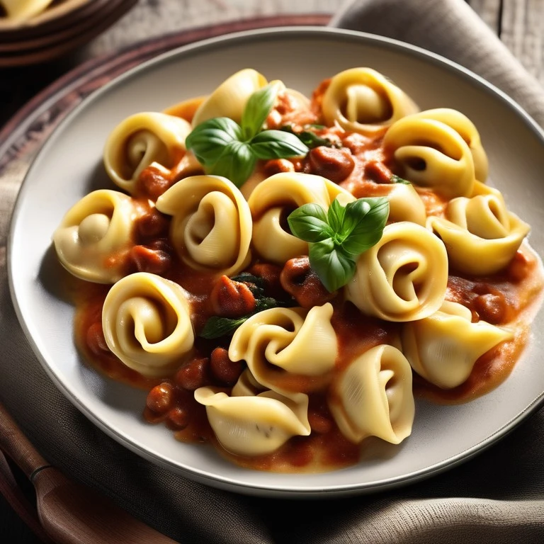 Ein köstliches und herzhaftes Gericht, das Tortellini mit hausgemachten Frikadellen kombiniert.