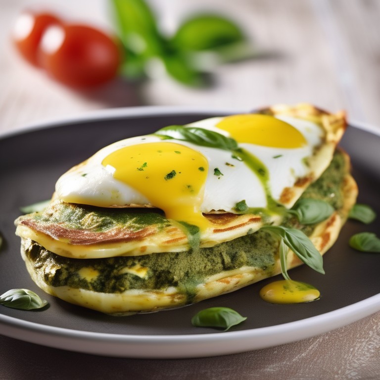 A delicious and flavorful omelette infused with the vibrant taste of homemade pesto.
