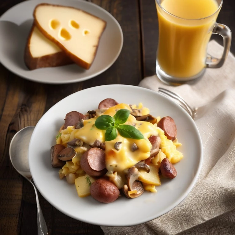 Revuelto de Patatas con Champiñones y Salchicha Ahumada al Estilo Campestre
