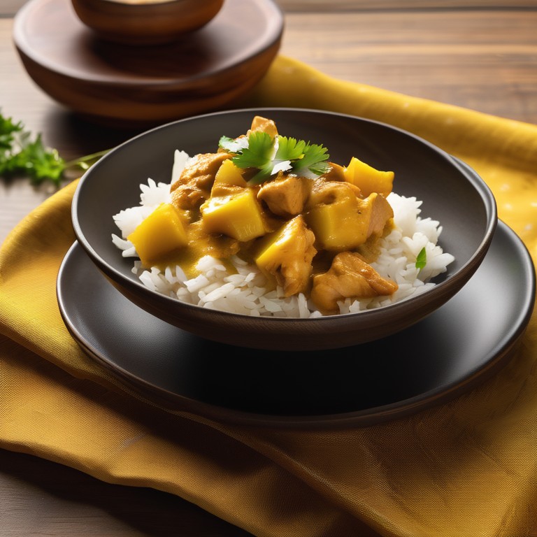 Hähnchen Ananas Curry mit Reis
