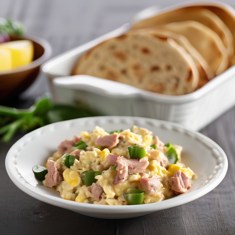 Un delicioso y fácil revuelto de atún con huevo servido con tortillas de harina calientes. Una comida reconfortante y rápida de preparar.