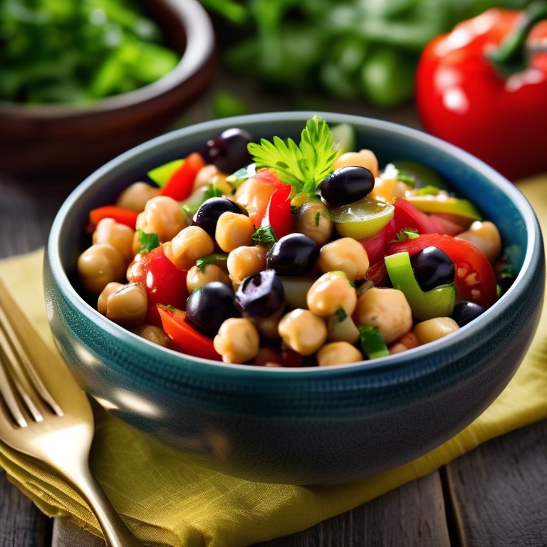 Una ensalada fresca y deliciosa de garbanzos con vinagreta de limón y hierbas aromáticas.