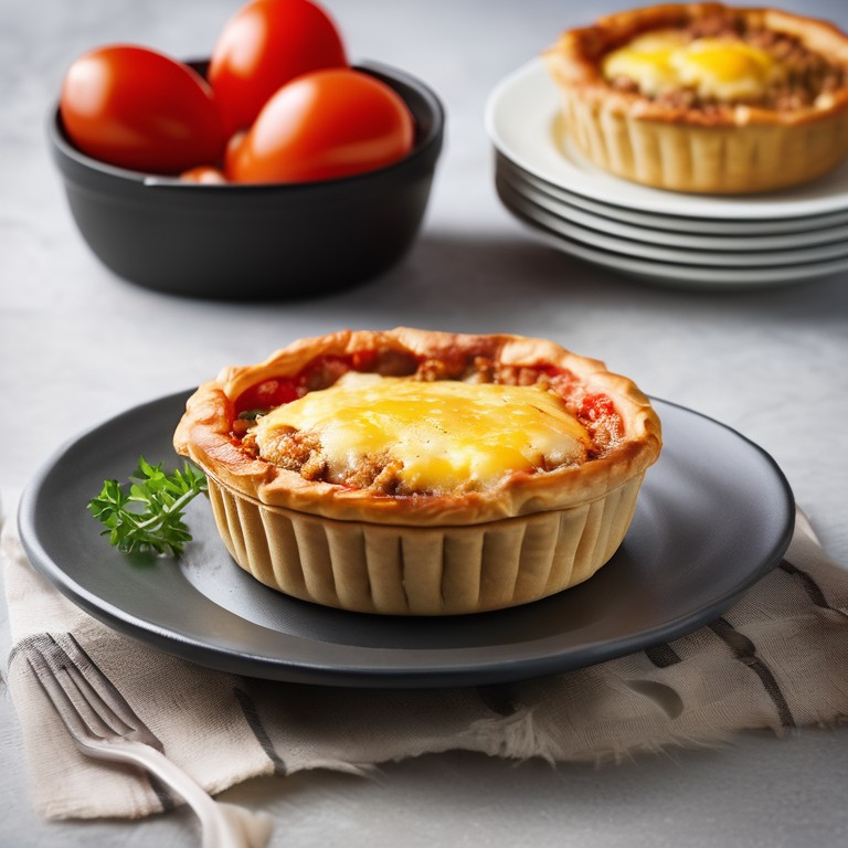 Un delicioso pastel de zapallo relleno con carne picada, tomate y queso, perfecto para una comida reconfortante y sabrosa.