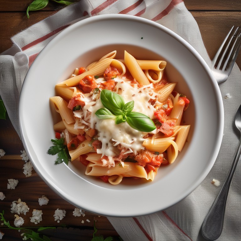 Deliciosa receta de pasta con pollo en una cremosa salsa de tomate y hierbas. Perfecta para una comida reconfortante y sabrosa.