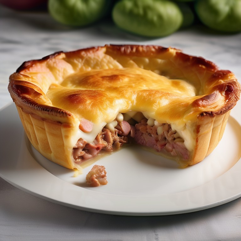 Delicioso pastel de papas con capas de queso mozzarella, carne y salchichón. Una receta reconfortante y sabrosa para toda la familia.