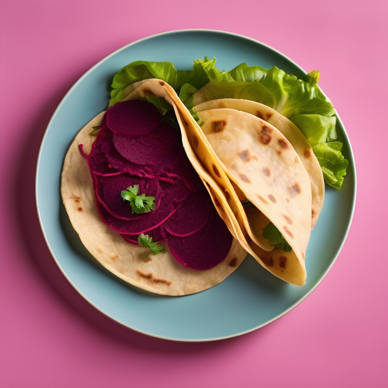 Deliciosas tortillas de papa con cáscara acompañadas de remolacha y lechuga. Un plato sabroso y lleno de color y nutrientes.