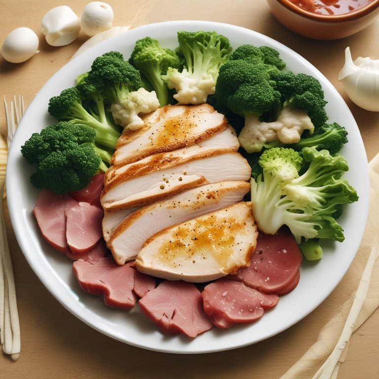 Una deliciosa y saludable combinación de proteínas magras y vegetales frescos, preparados de manera baja en grasa para una comida nutritiva y sabrosa.