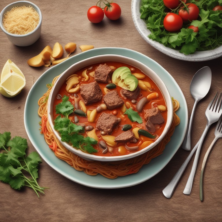 Una reconfortante sopa de fideos con carne molida y una variedad de vegetales nutritivos como cebolla, zanahoria y puerros. Perfecta para calentar el cuerpo en un día frío.