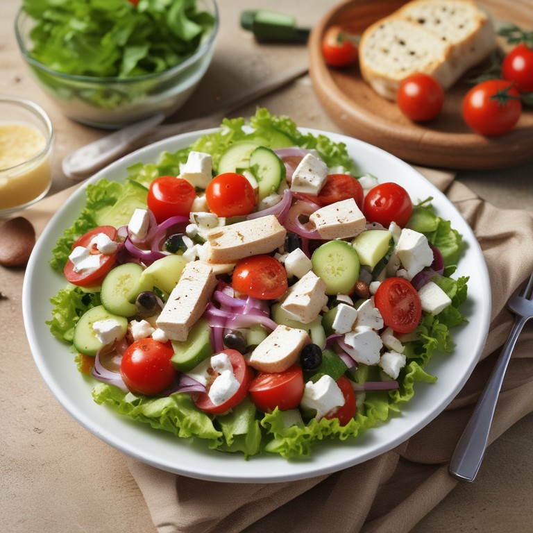 Свежий и ароматный греческий салат с нежным филе курицы и сыром фета