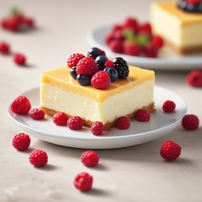 Delicioso postre de tarta de queso con una mezcla de frutos rojos y el sabor intenso de las frambuesas. Una combinación perfecta para satisfacer tu paladar.