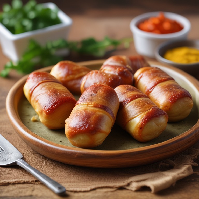 Deliciosa receta de banderillas de salchicha envueltas en una masa de papas y harina de maíz, perfectas para compartir en reuniones o como aperitivo.