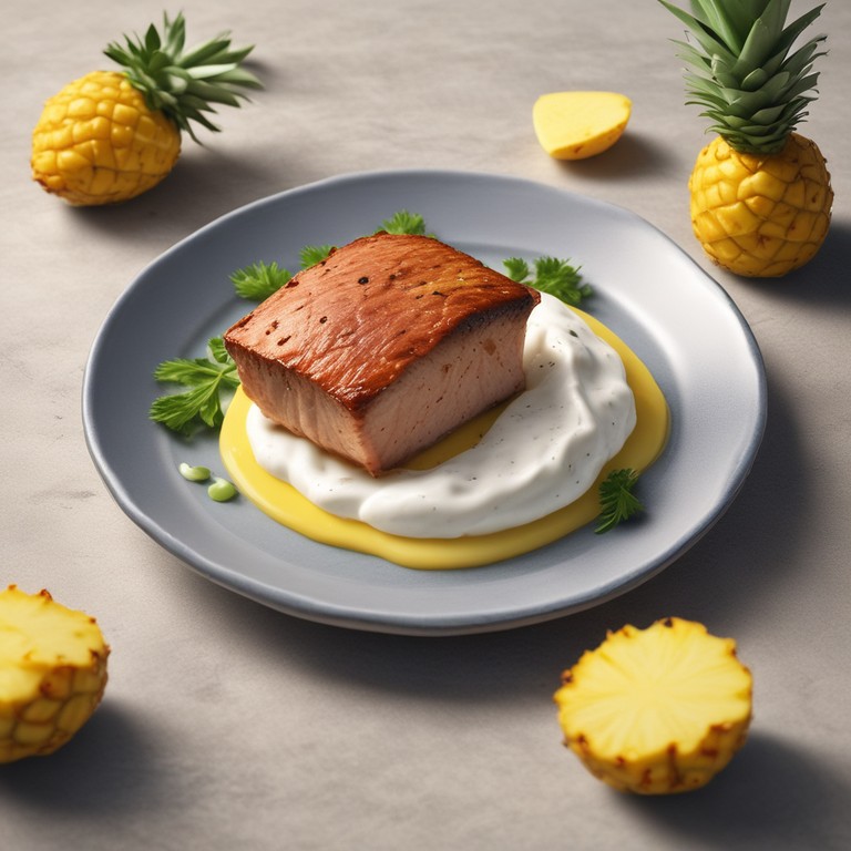 Delicioso filete de mero con una salsa aromática de yogur y piña que combina sabores exóticos y frescos.