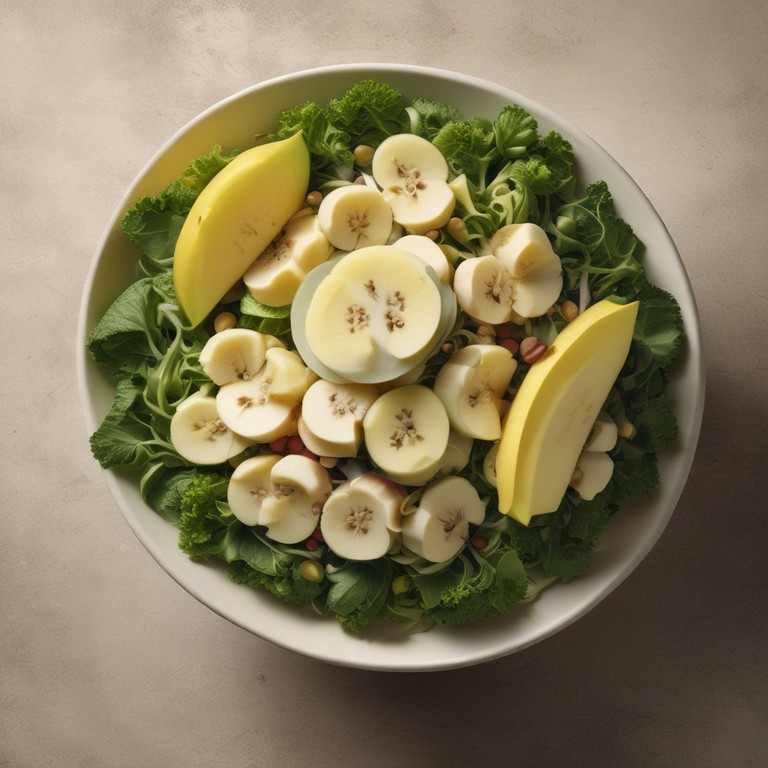 Una deliciosa ensalada fresca con plátano, lechuga y un refrescante aderezo de limón.