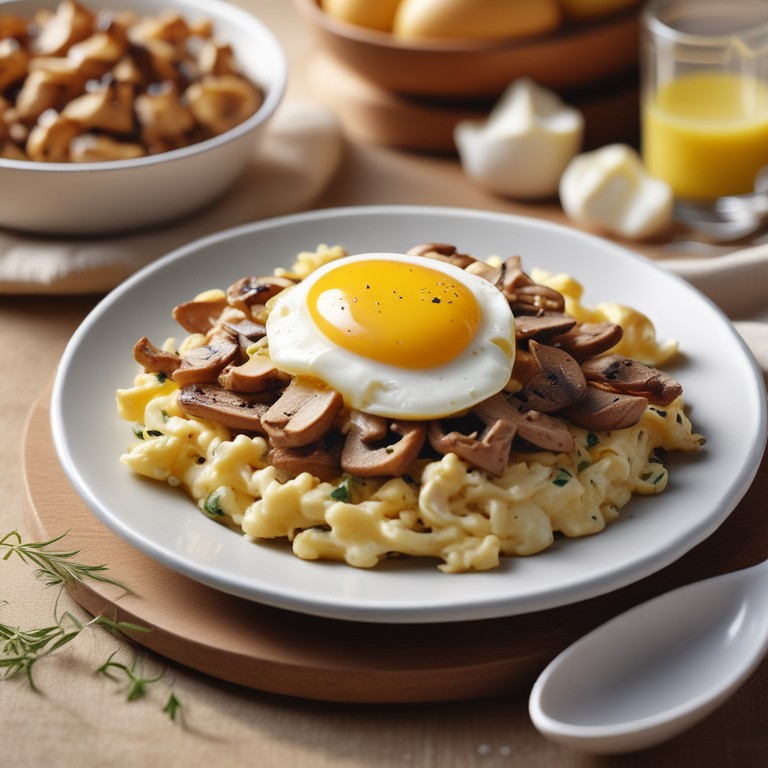 Un delicioso revuelto de huevo con champiñones, cebolla, atún y una cremosa combinación de mantequilla y mayonesa. Perfecto para una cena reconfortante y sabrosa.