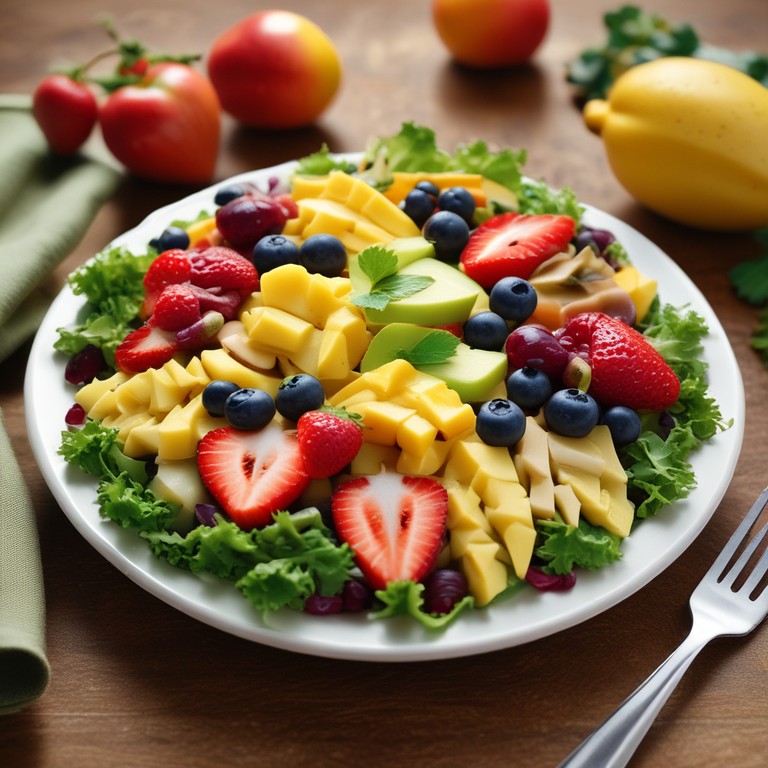 Una ensalada colorida y refrescante con una mezcla de frutas de verano para acompañar perfectamente la carne de cerdo.