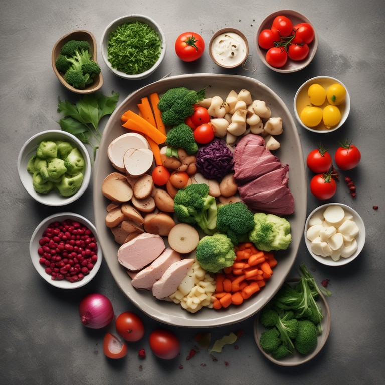 Plato Balanceado con Proteínas, Vegetales, Tubérculos y Guarniciones de Carbohidratos