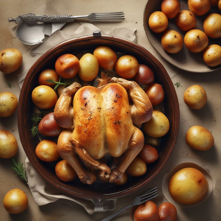 Delicioso pollo asado con papas al horno sazonadas a la perfección.