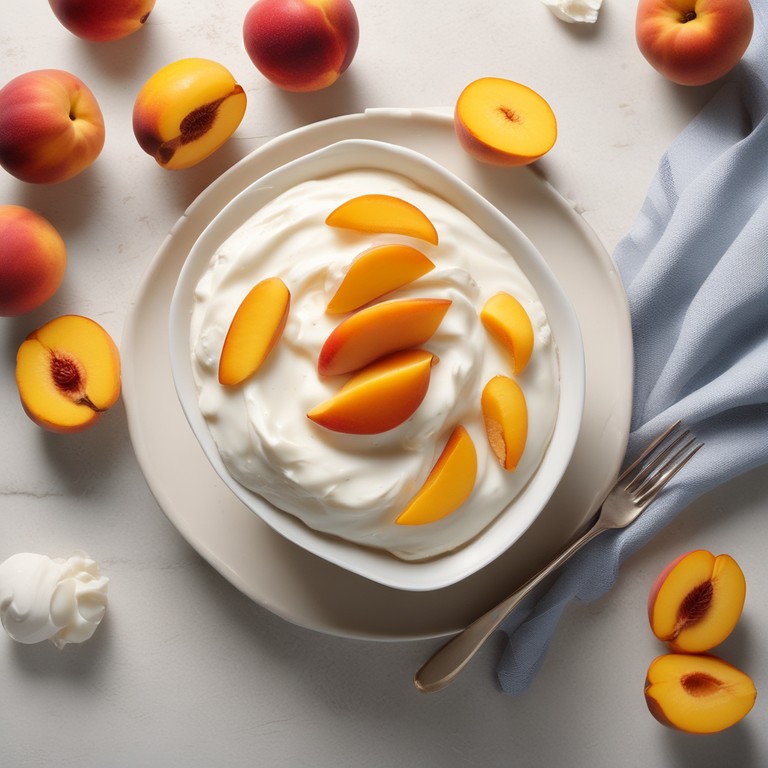 Delicioso yogurt casero con duraznos frescos para disfrutar como un postre refrescante o un tentempié saludable.