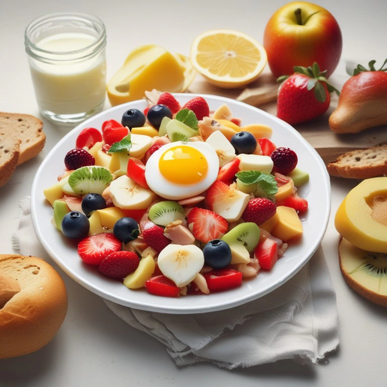 Una ensalada refrescante y nutritiva que combina la frescura de las frutas con la suavidad del huevo y la textura crujiente del pan tostado. Perfecta para un desayuno o brunch saludable.