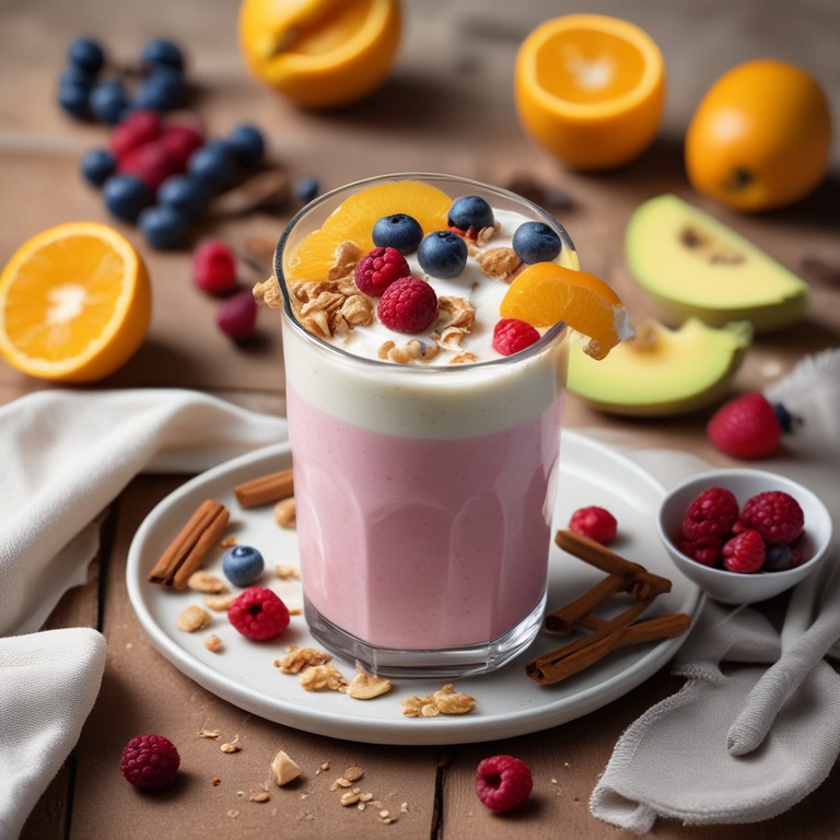 Este batido de yogur con avena y frutos secos es una deliciosa y saludable opción para disfrutar en cualquier momento del día. La combinación de sabores de los frutos rojos, la vainilla, la canela y la naranja crea una mezcla refrescante y llena de nutrientes. ¡Perfecto para un desayuno energético o como un snack nutritivo!
