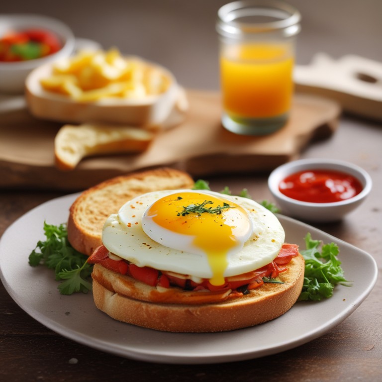 This recipe combines the creaminess of mayo, the spiciness of chilli sauce, and the heartiness of eggs and potatoes in a delicious sandwich. It's a perfect blend of flavors and textures, making it a satisfying meal for any time of the day.
