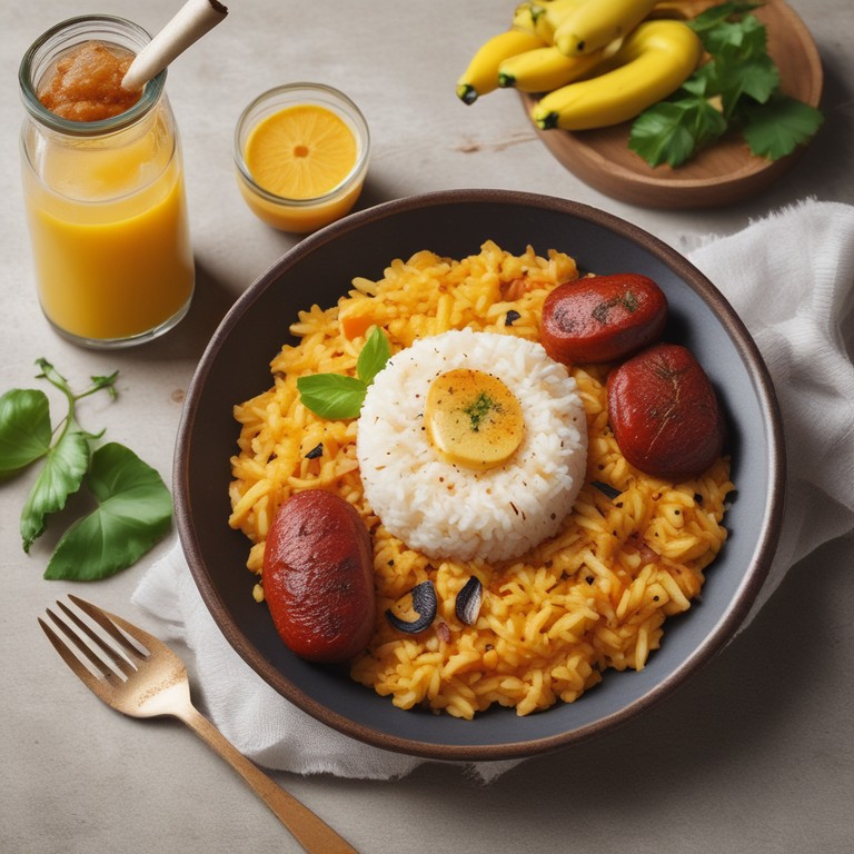 Este plato de arroz con salchicha ranchera y plátano maduro frito es una deliciosa combinación de sabores. El arroz se cocina con las salchichas rancheras y se mezcla con las papas, plátano maduro frito y cilantro fresco. La mayonesa le da un toque cremoso al plato. ¡Una receta reconfortante y sabrosa para disfrutar en cualquier ocasión!