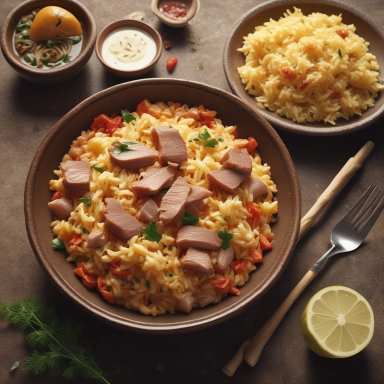 Este delicioso plato de arroz combina la suavidad del atún, la jugosidad del pollo y la carne de res con el toque aromático de la cebolla. Es una receta fácil de preparar y muy nutritiva, perfecta para una comida equilibrada y sabrosa.