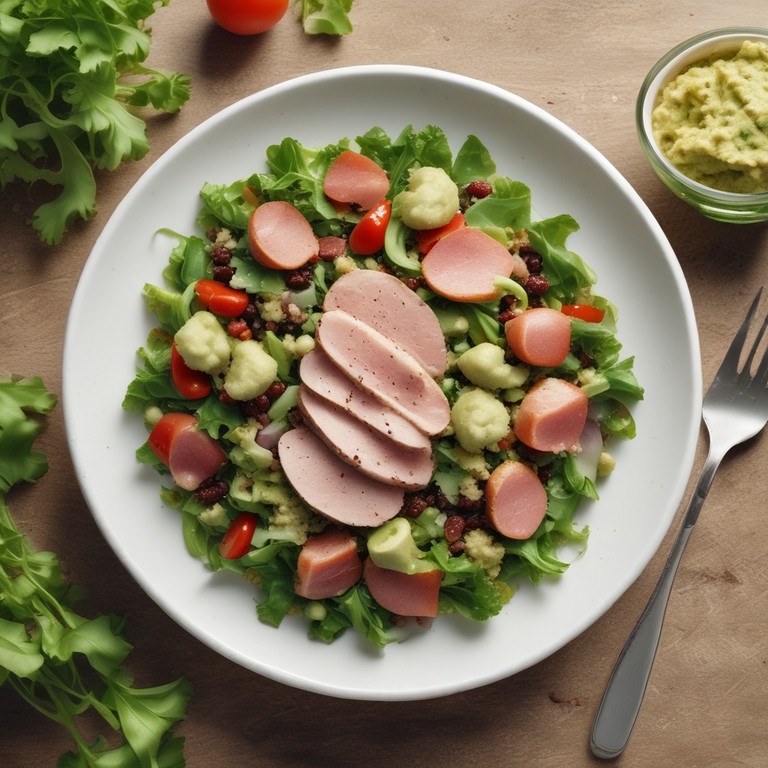 Una ensalada fresca y nutritiva que combina la frescura de la lechuga, la proteína de la quinoa, la cremosidad del guacamole, la suavidad de los ñoquis y el sabor del jamón. Perfecta como plato principal o acompañamiento en cualquier comida.
