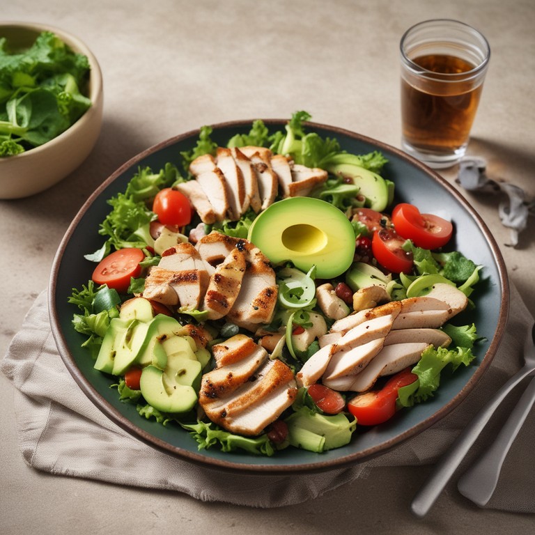 Esta ensalada de pollo y aguacate es perfecta para el mediodía, ya que es baja en calorías pero llena de sabor y nutrientes. La combinación de pollo a la parrilla, aguacate cremoso, y verduras frescas hace de esta ensalada una opción saludable y satisfactoria. El aderezo de mostaza, miel y vinagre balsámico agrega un toque de dulzura y acidez que realza los sabores. ¡Una comida deliciosa y equilibrada para disfrutar en cualquier momento del día!