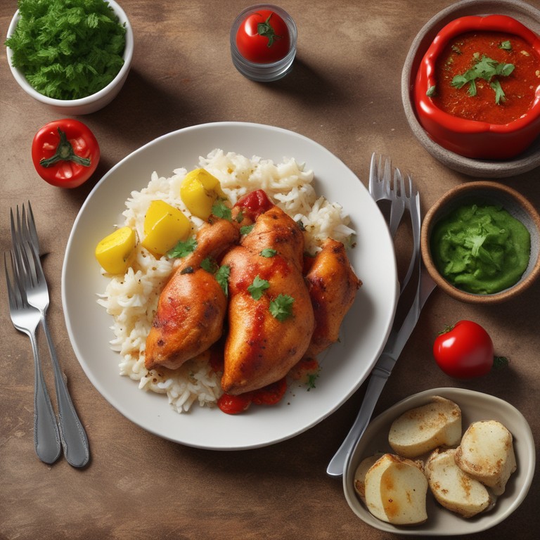 Pollo Ají Colorado con Arroz y Papa