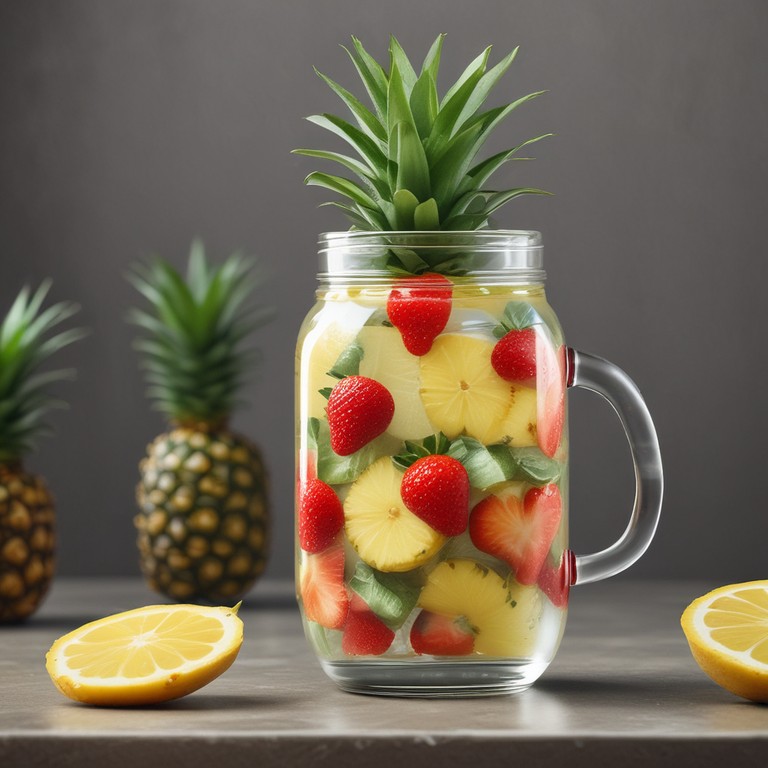 Esta refrescante agua fresca combina la dulzura de la piña, la frescura de las fresas y el toque cítrico del limón. Es una bebida perfecta para disfrutar en días calurosos y es muy fácil de preparar. ¡Disfruta de esta deliciosa y colorida bebida!