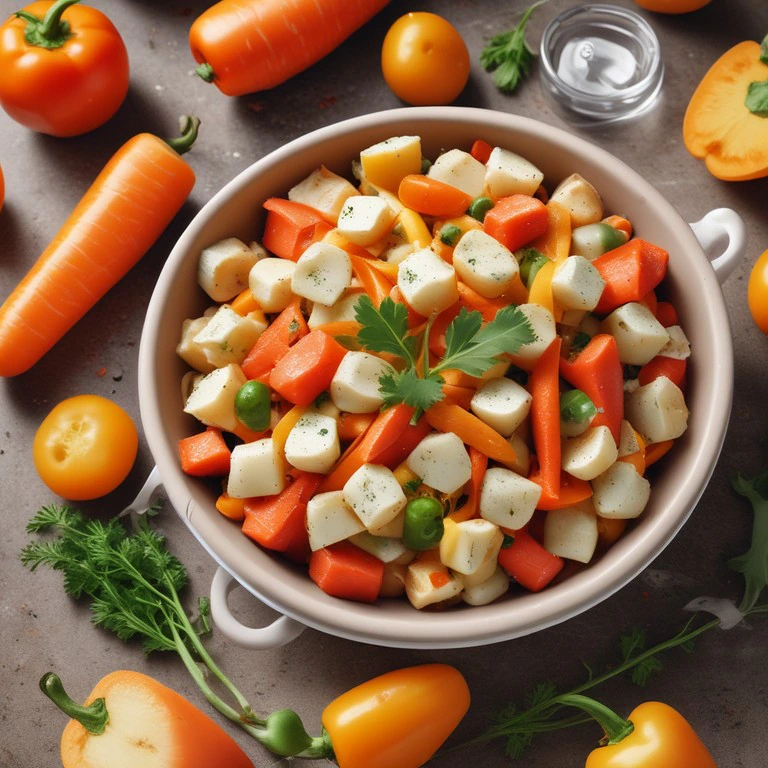 Una ensalada fresca y colorida que combina la suavidad de las papas con la textura crujiente de las zanahorias y el sabor dulce del pimentón. Perfecta como acompañamiento o plato principal en cualquier comida.