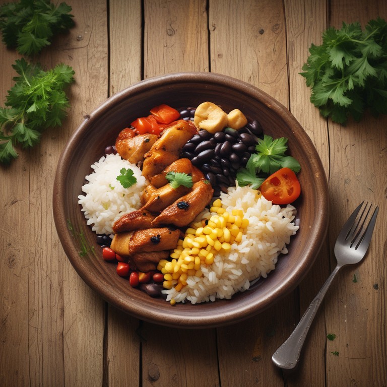 Este prato tradicional brasileiro combina arroz, feijão e frango de uma maneira deliciosa e nutritiva. É uma refeição completa que traz o sabor e a cultura do Brasil para a sua mesa.