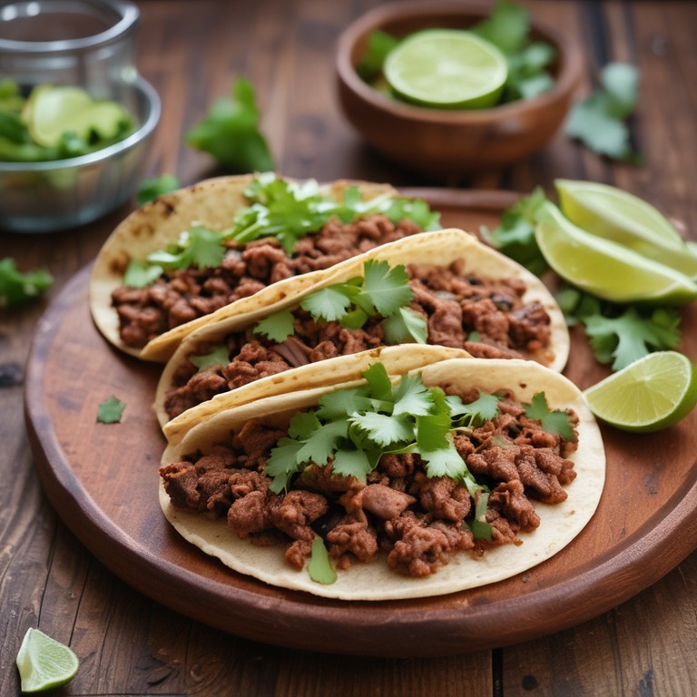 Estos tacos de carne molida son una deliciosa opción para una comida rápida y sabrosa. La carne se sazona con especias y se sirve en tortillas de maíz, acompañados de cilantro fresco y limón para un toque extra de frescura.