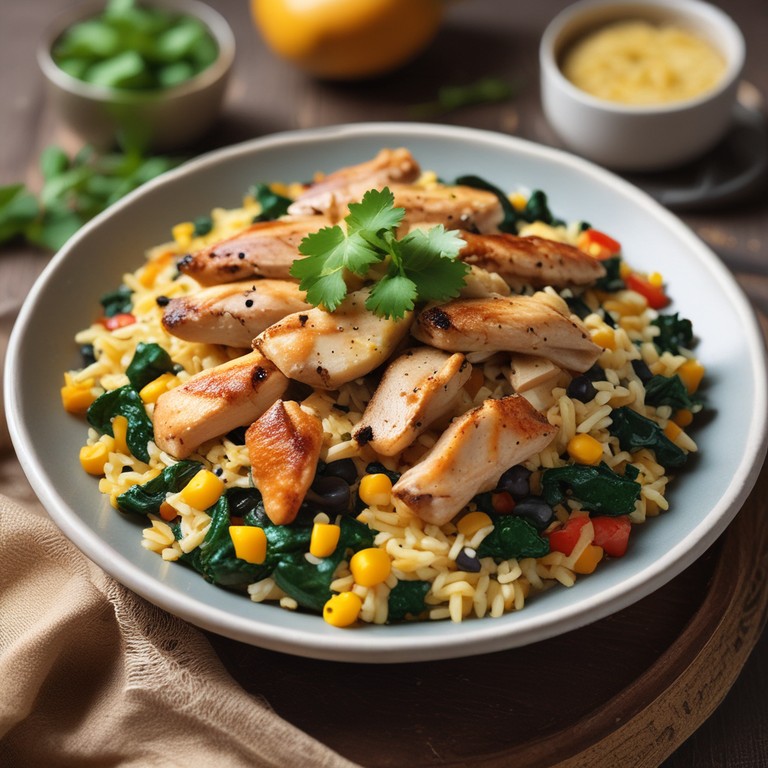 Este delicioso Arroz con Pollo y Espinacas es una combinación perfecta de sabores y texturas. La espinaca fresca, los frijoles negros y el maíz dulce se mezclan con el pollo tierno y el arroz, creando un plato nutritivo y satisfactorio. Ideal para una comida familiar o una cena especial.