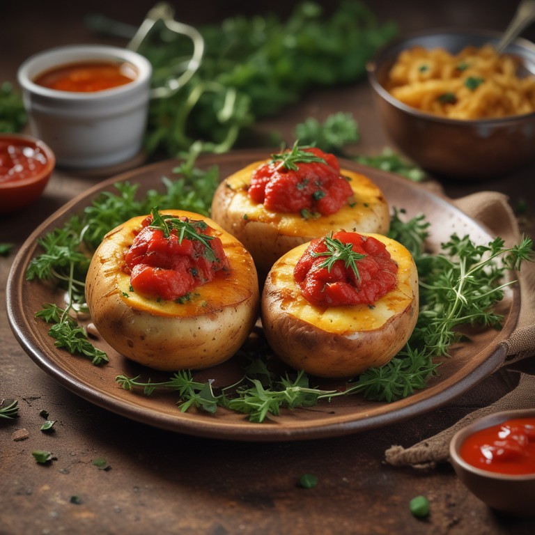 Papas Rellenas con Salsa de Tomate y Cebolla