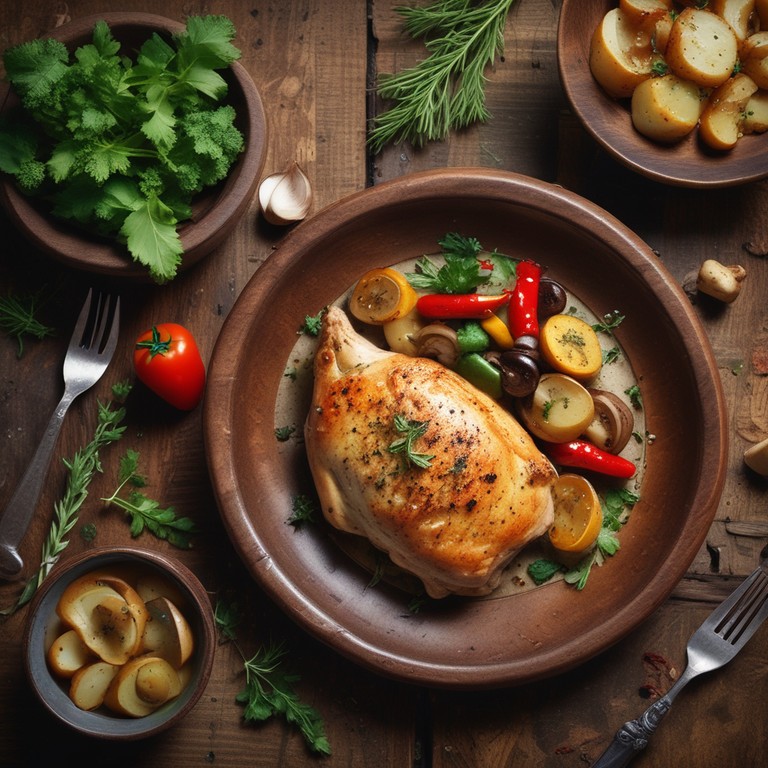 Pechuga de Pollo con Champiñones, Papas y Pimientos al Horno