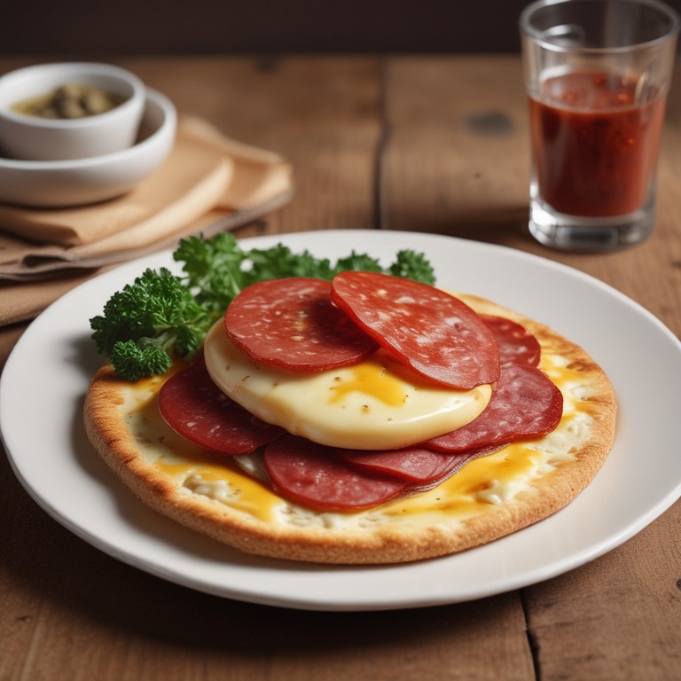 Este plato combina la cremosidad del queso fundido con el sabor salado del salami y la frescura del tomate, todo servido sobre galletas tostadas crujientes. Perfecto como aperitivo o para compartir en una reunión.
