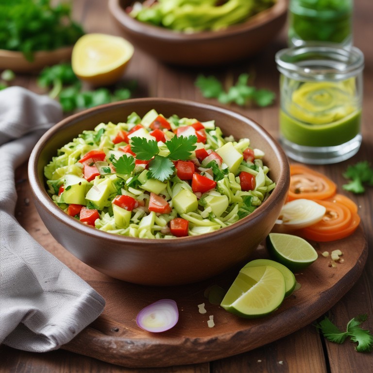 Esta salsa de repollo y aguacate con vinagreta de perejil es una opción fresca y saludable para acompañar tus platos favoritos. La combinación de repollo crujiente, cebolla, ajo y perejil, junto con la cremosidad del aguacate opcional, crea una salsa llena de sabor y textura. Perfecta para ensaladas, tacos o como acompañamiento de carnes.
